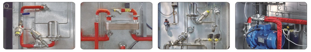 ● 304 sanitærrør i rustfritt stål, med klemforbindelser. Ved å ta i bruk GEMU vinkelsete pneumatiske ventiler importert fra Tyskland, magnetventiler levert av Taiwan AirTAC og direkte tilkoblet vannringvakuumpumpe importert fra tyske SPECK.